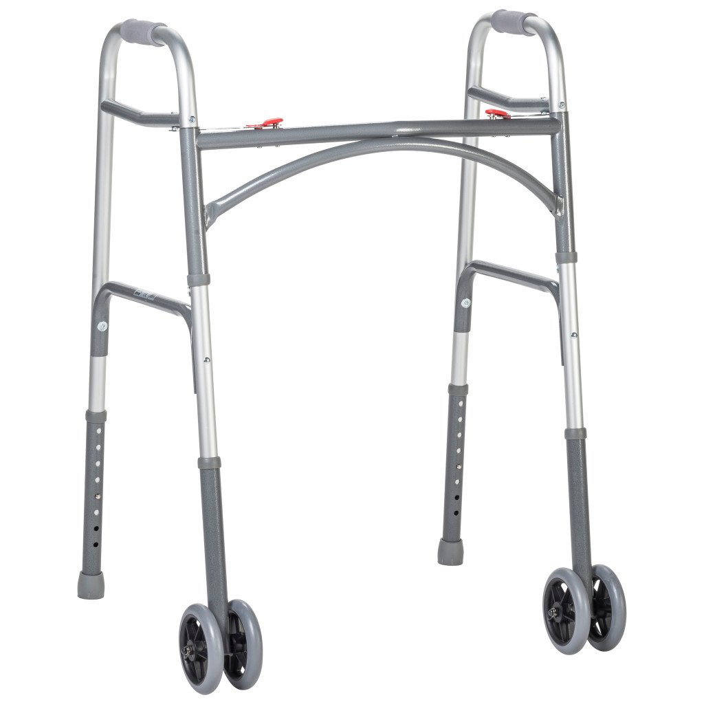 Bariatric Aluminum Two Button Folding Walker with Wheels